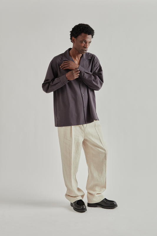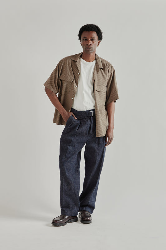 Summer Wool Open Collar Shirt - Brown Plaid