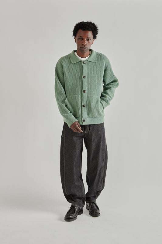 Ultra Heavyweight Collar Cardigan - Jade Green