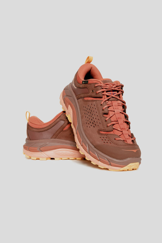 In nearly every sense, the re-released Tor Ultra Hi is a direct echo of the original – and thank goodness for that. HOKA has staked their name on supportive, high-performance footwear and you’d be hard-pressed to find a better example of that than this rugged yet stylish stomper. The Tor Ultra Hi features the same larger-than-life midsole that’s built to withstand hundred-mile ultramarathons, alongside their signature Meta-Rocker technology to encourage and support your natural gait. All the other HOKA hallmarks are here too, such as a wide geometric footbed and their J-Frame heel support system, alongside more outdoorsy additions like a Sierra Buck leather and mesh upper and a rubber toe cap. HOKA co-founders Nicolas Mermoud and Jean-Luc Diard met during their time at Salomon, so while the brand’s running gear may see a larger share of the limelight, their deep ties to the trail are beyond question. Hard-wearing hiking functionality is everywhere in the revamped Tor Ultra, most notably in the newly added GORE-TEX® liner, which has replaced the original model’s eVent lining for even better waterproofing ability. Padding is plentiful all the way up the ankle, securely locking in the foot with a lengthened lace system that’ll stay put over any amount of distance. The Tor Ultra rounds out its impressive array of offerings with a Vibram Megagrip outsole – the gold standard for terrain traction and stability on any terrain. All this, in just over 18 ounces of shoe.