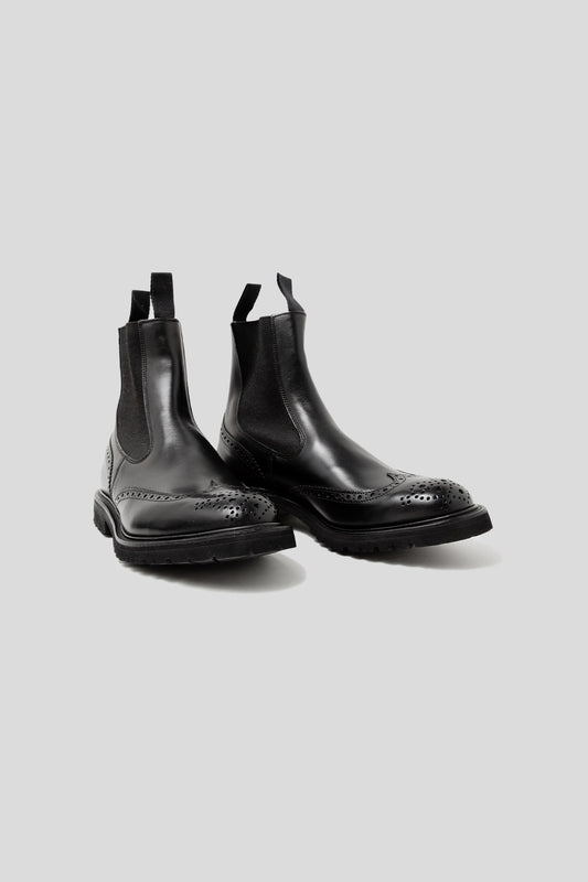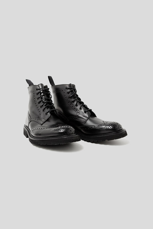 In application, these two boots are Tricker’s through and through. We’re well-acquainted with both the Henry and Stow styles, but we’ve kept them to ourselves up to this point... apologies for that. We’re sure glad we waited though, because we can’t think of a better way to introduce them than in these all-natural, all-black remastered editions. Let’s start with the Stow Country Boot, which is – for our money – the single most iconic Tricker’s style. A hard-wearing, do-everything boot that would originally have adorned the feet of the so-called ‘gentlemen farmers’ of 19th century England, the Stow has a seven-eye design with a sturdy construction featuring Tricker’s distinctive brogue pattern. Befitting its blue-collar roots, the boot’s upper and sole are fused with a storm welt to form a watertight seal, in addition to a weather-proof half bellows tongue to ensure no moisture sneaks in.