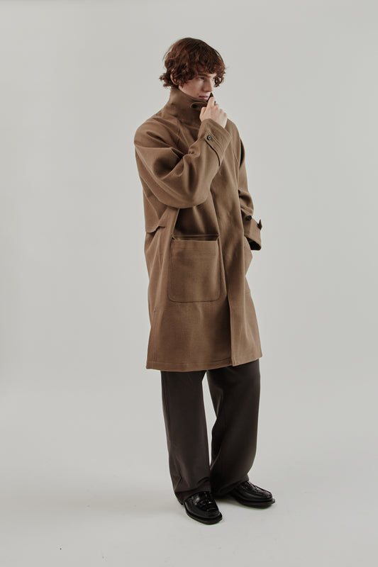 Wool/Nylon Bal Collar Coat - Khaki Beige