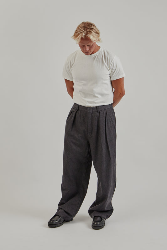 Wool Gabardine Pleat Pants - Charcoal