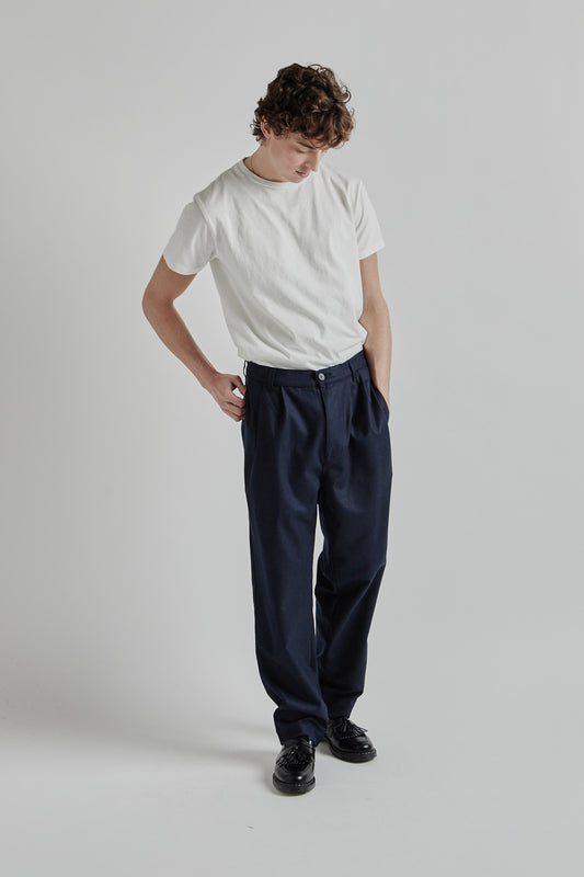 Double Pleated Pants High Density Cotton Twill - Navy Blue