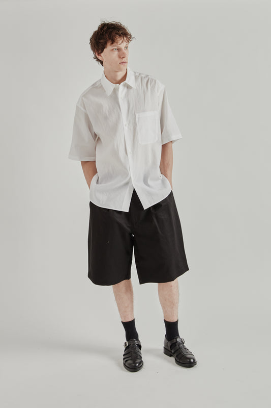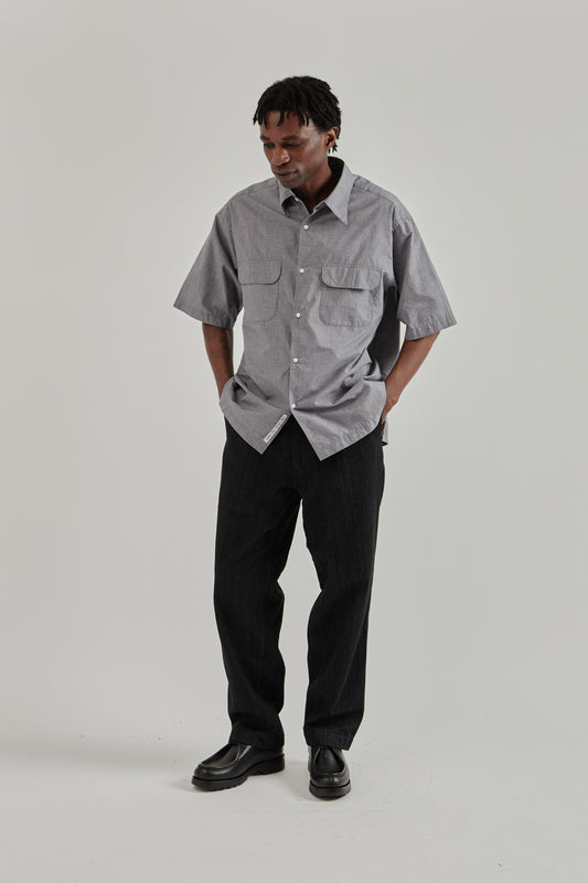 Open Collar Panama Short Sleeve Shirt - Charcoal
