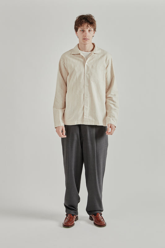 Linen Mixed Narrow Collar Shirt - Light Beige