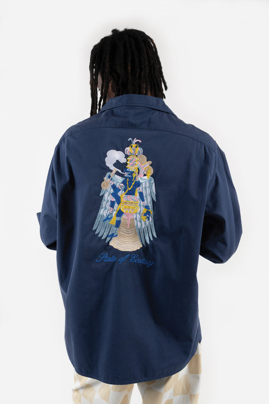 Button Down Wind Short Sleeve Shirt - Grayish Navy