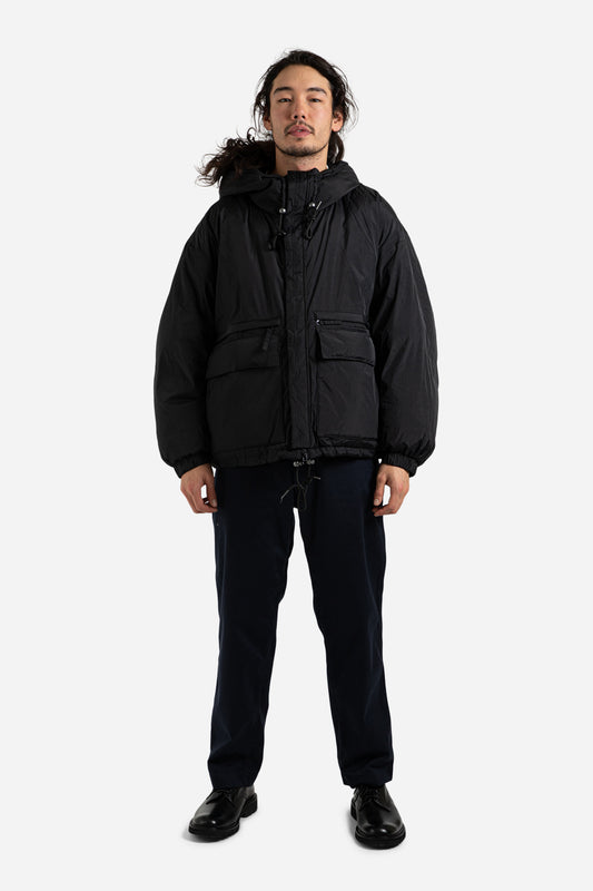 Nylon Hooded Puffer Down Parka - Black