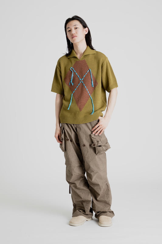 London Argyle Jacquared Short Sleeve Polo Knit - Khaki