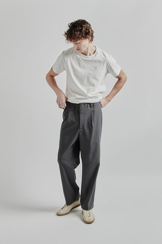 One Tuck Tapered Stretch Twill Pants - Dark Navy