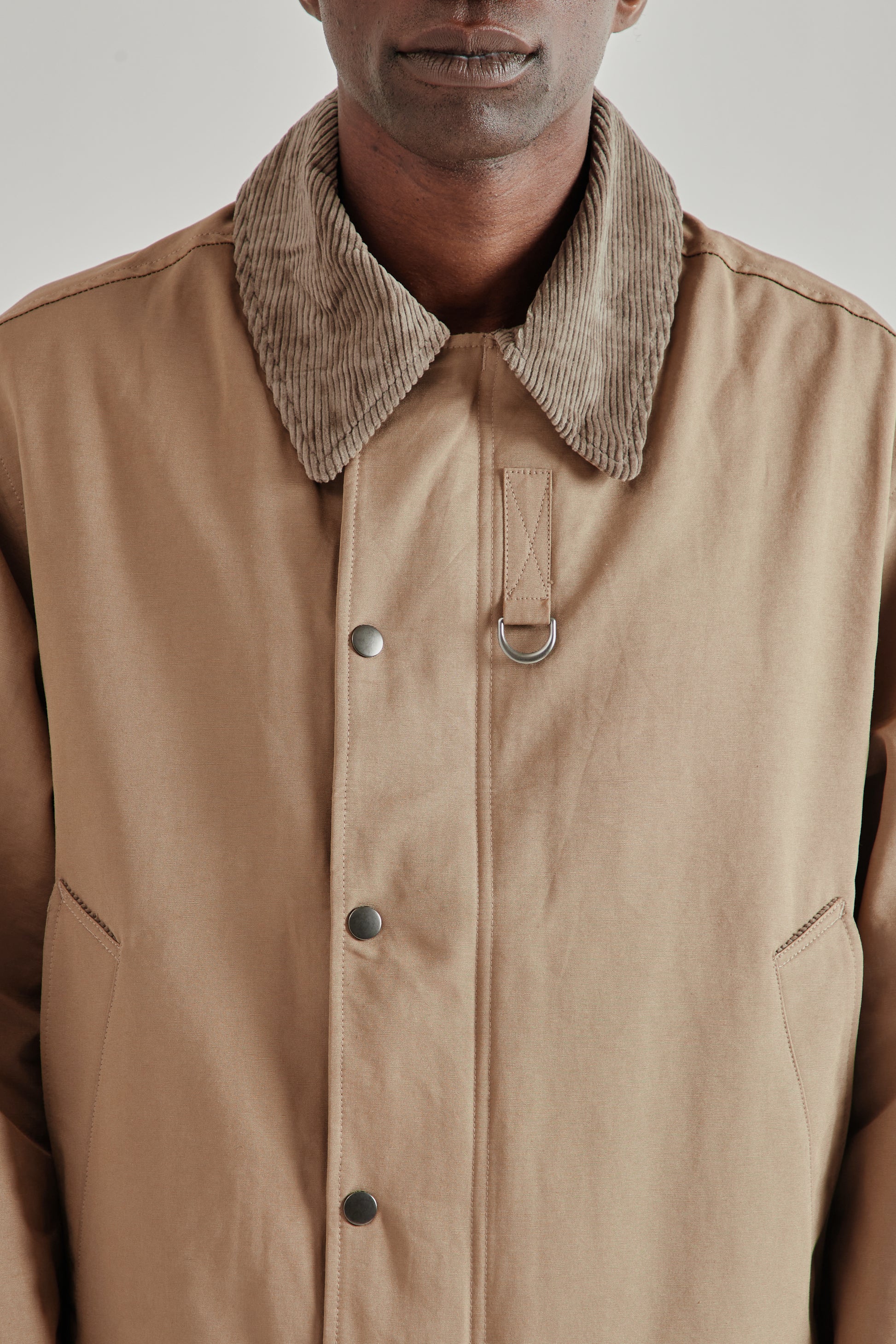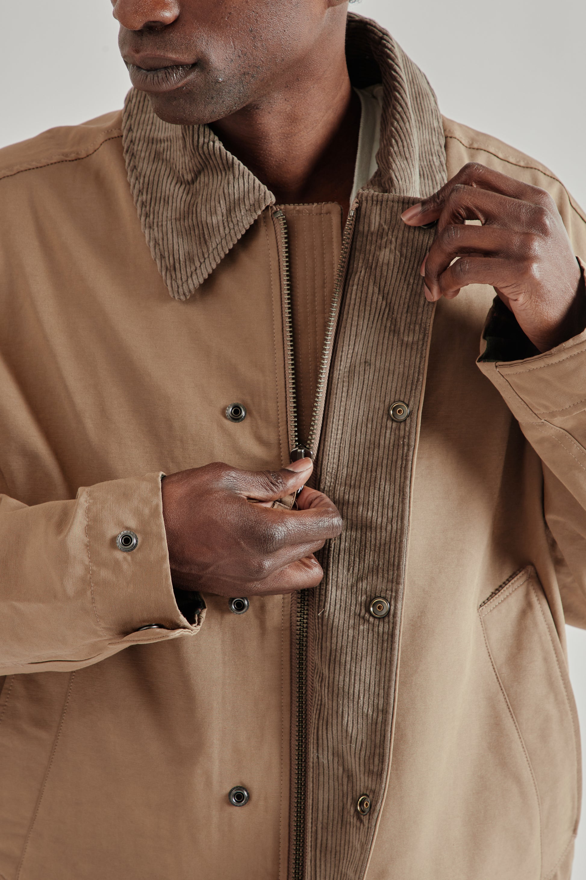 The Heritage Hunting Jacket blends classic outdoor influences with a modern silhouette. Designed with elements from traditional hunting jackets and the MK3 jacket, it features a wide fit and short length for a contemporary look. The outer shell is crafted from durable CPN peach-processed fabric, complemented by corduroy accents on the collar and hem for added texture. A soft flannel check lining enhances warmth and depth. Finished with a heavy-duty YKK No. 8 zipper and conveniently placed front pockets.