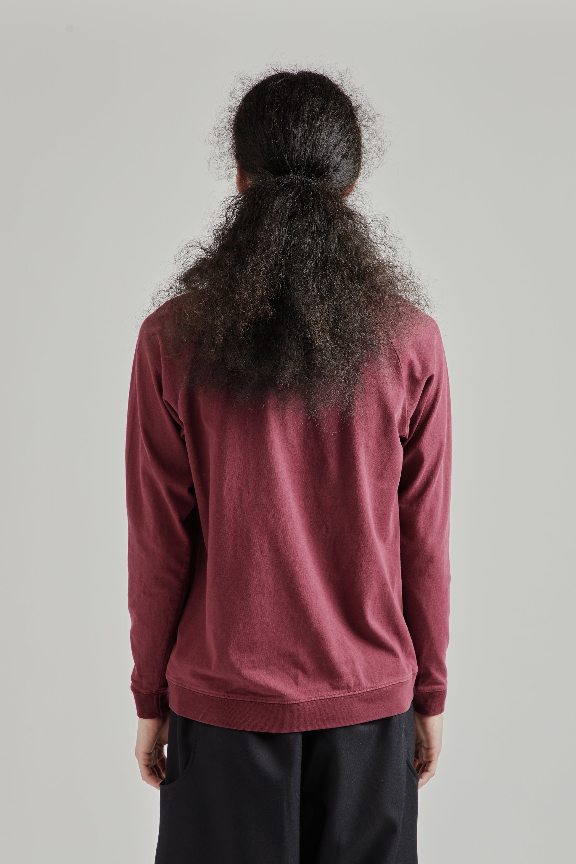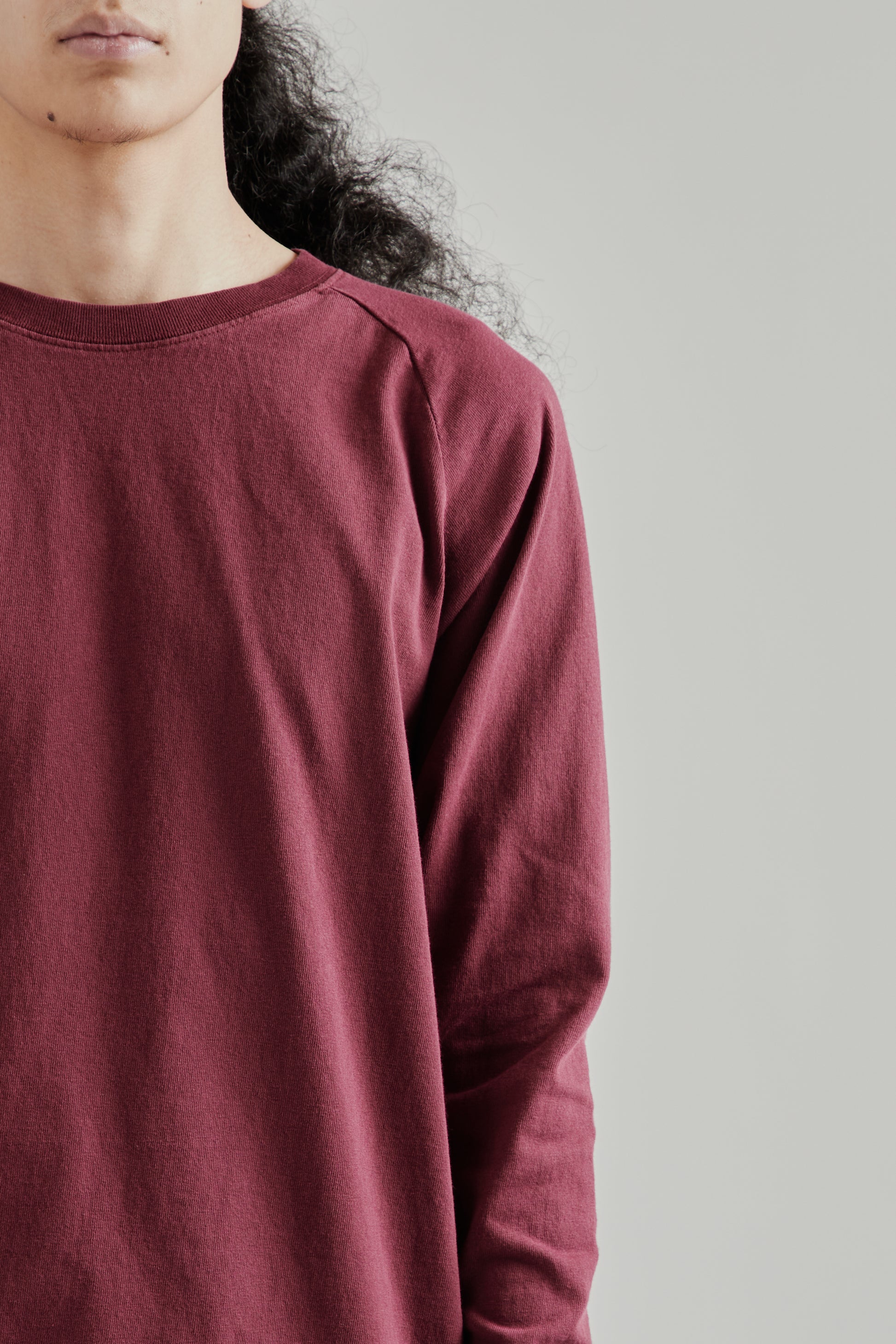 The Pigment Long Sleeve Raglan Tee in Burgundy is crafted from soft, garment-dyed cotton, giving it a worn-in feel and subtle vintage character. Featuring raglan sleeves for unrestricted movement, this tee offers a relaxed, classic fit ideal for layering or wearing alone. Durable, comfortable, and versatile, it’s a timeless piece built for everyday wear.