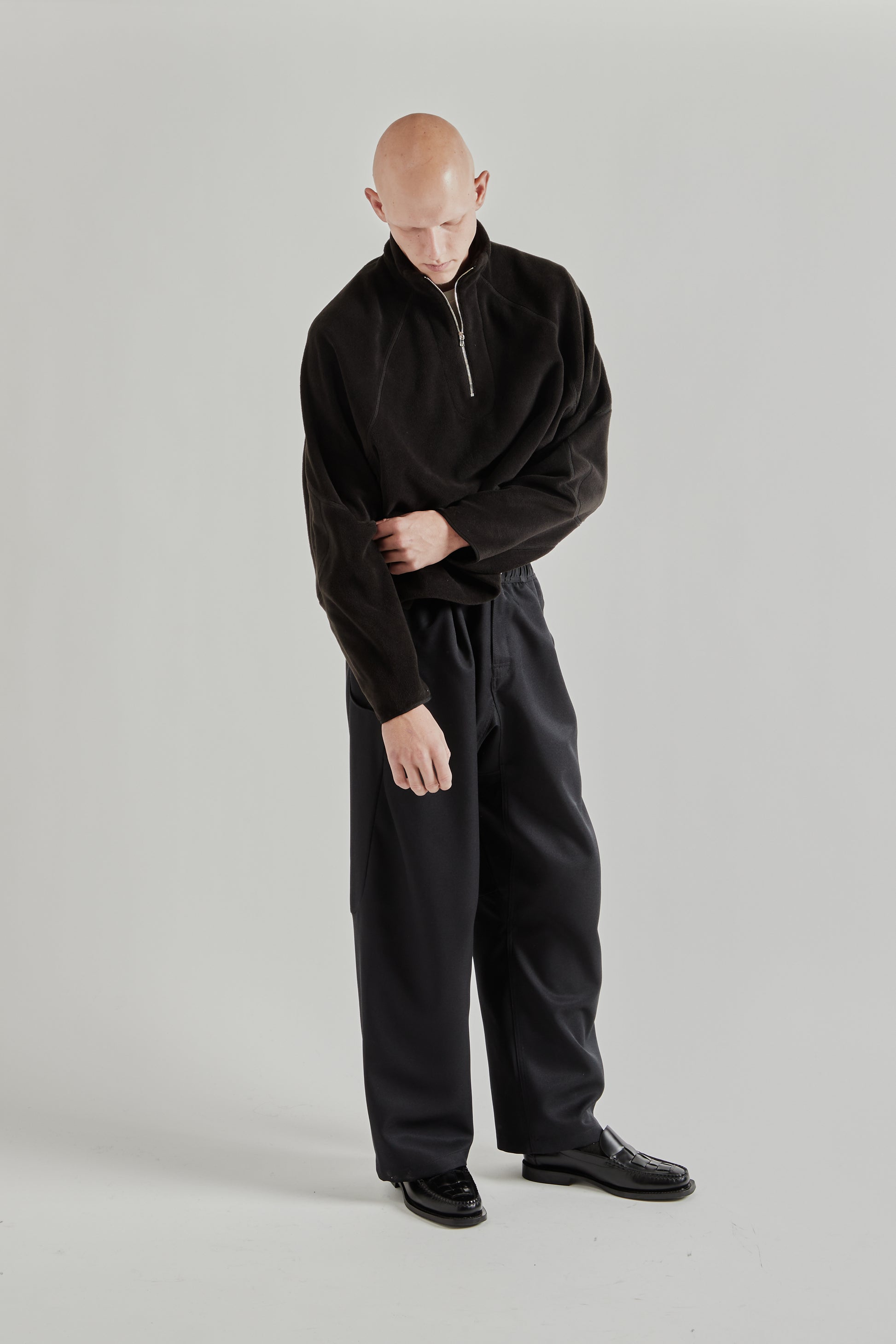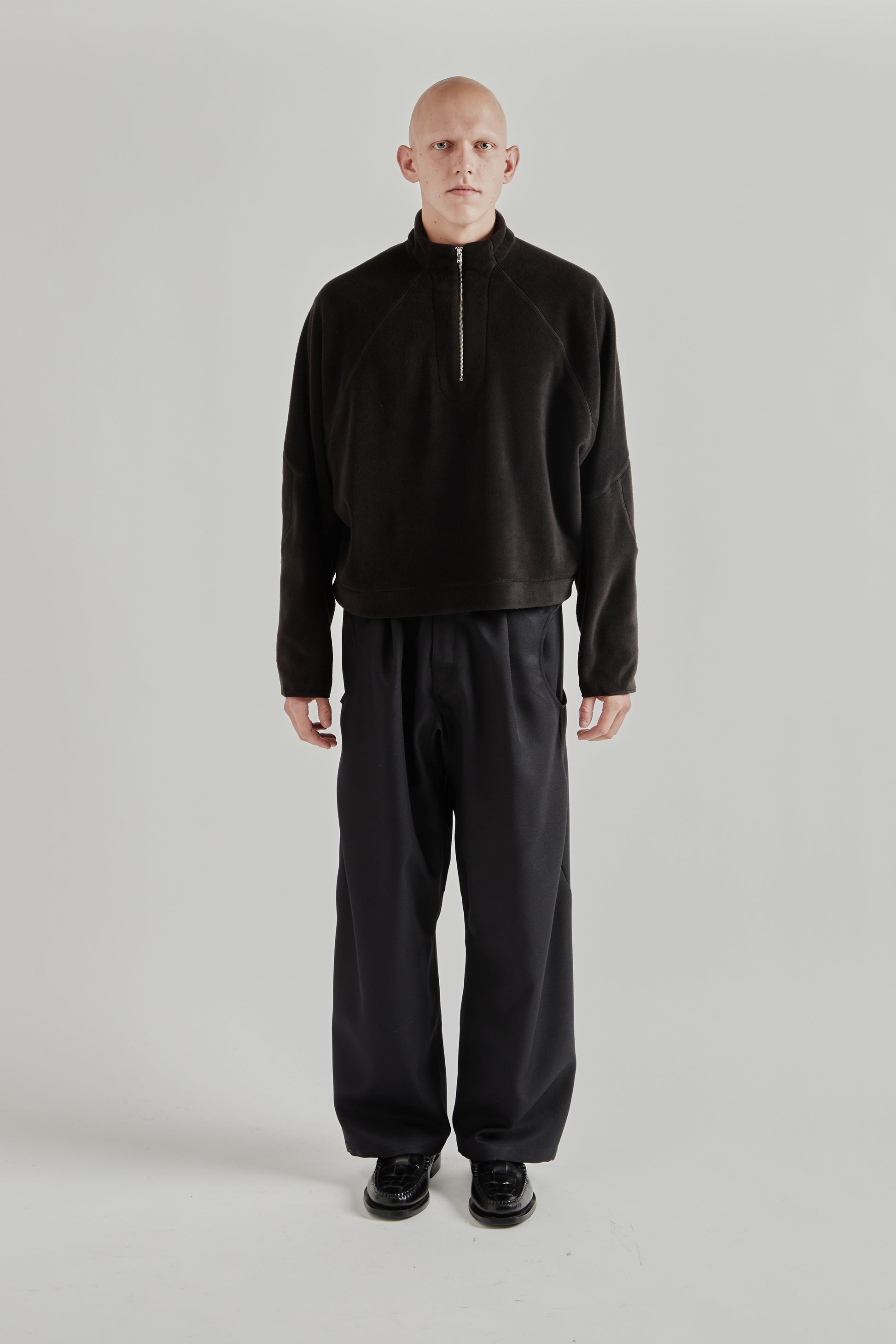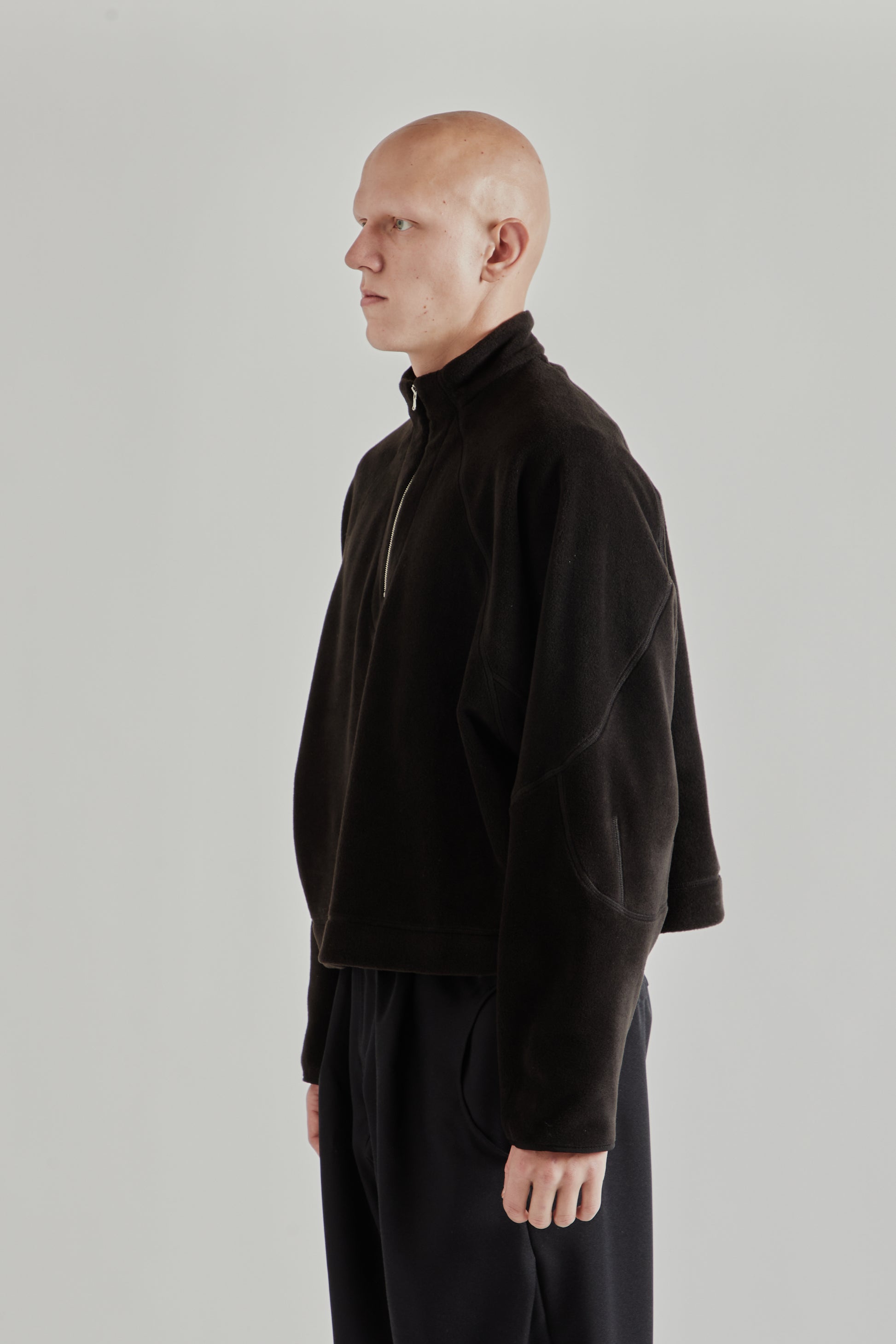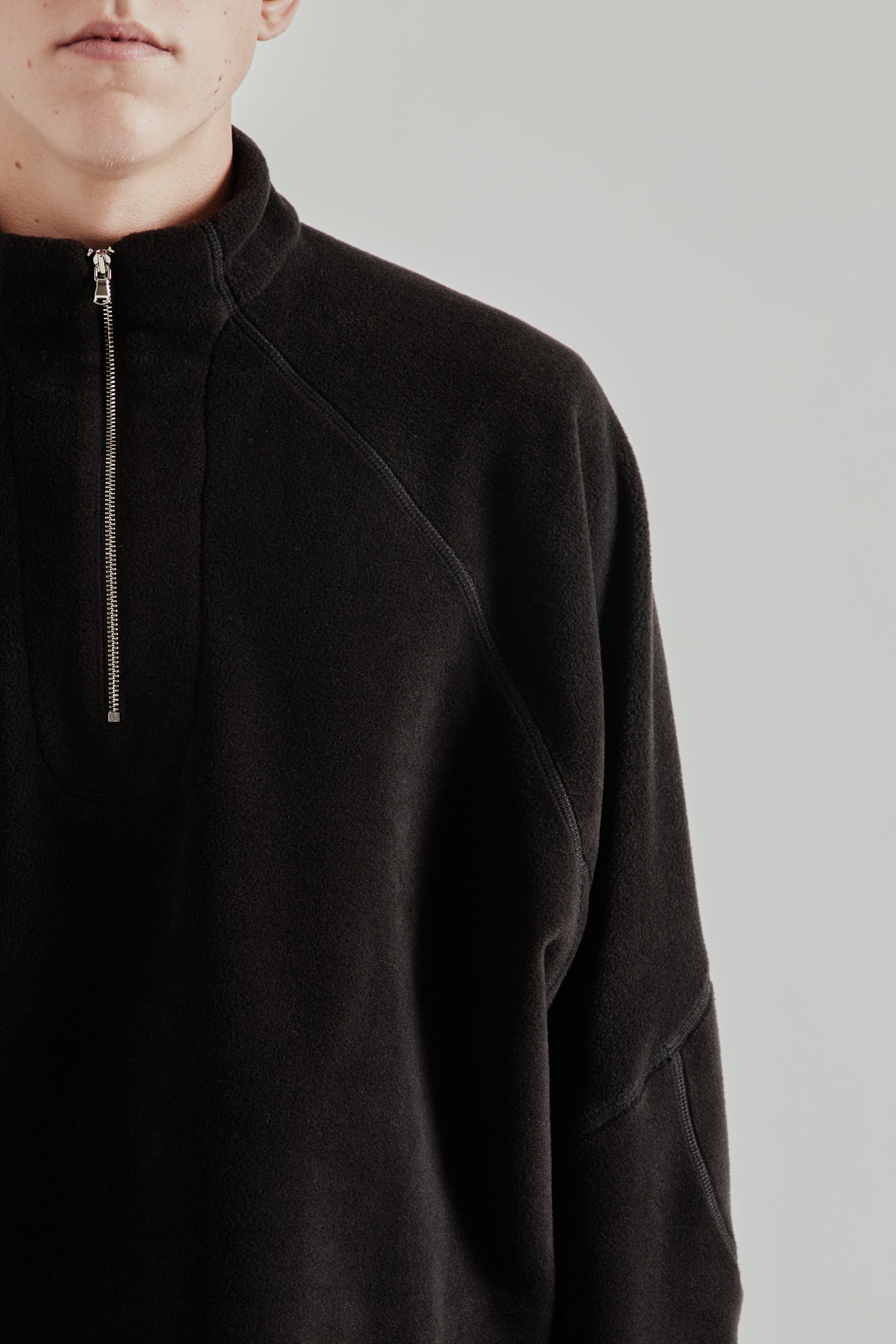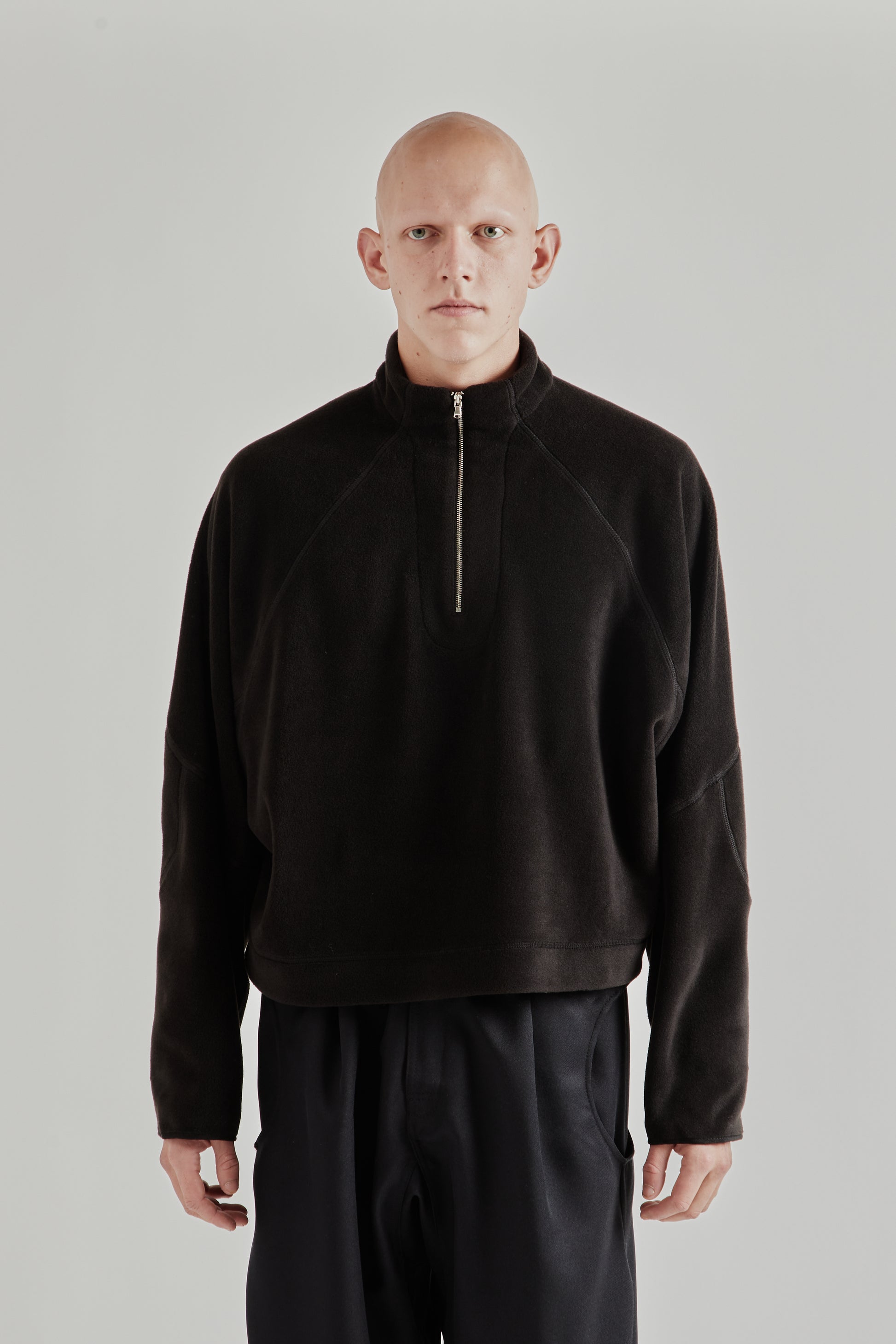 The Technical Series Q-Zip in Black from New York–based Greg Laboratory offers a modern take on classic layering. Crafted from soft double-knit fleece, this boxy, oversized cropped quarter-zip provides a perfect balance of warmth and lightweight comfort. Finished with a polished silver YKK zipper, the piece combines functional details with a refined, minimalist aesthetic ideal for everyday wear.