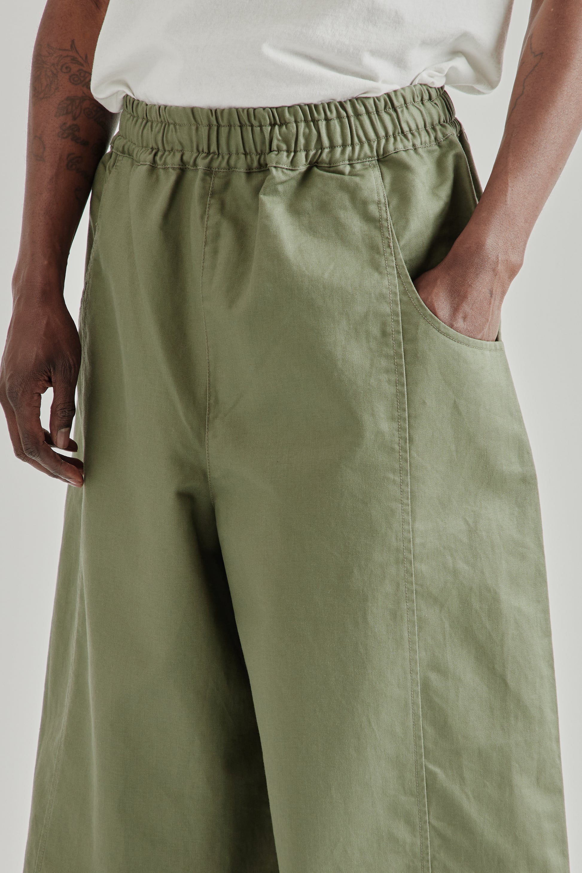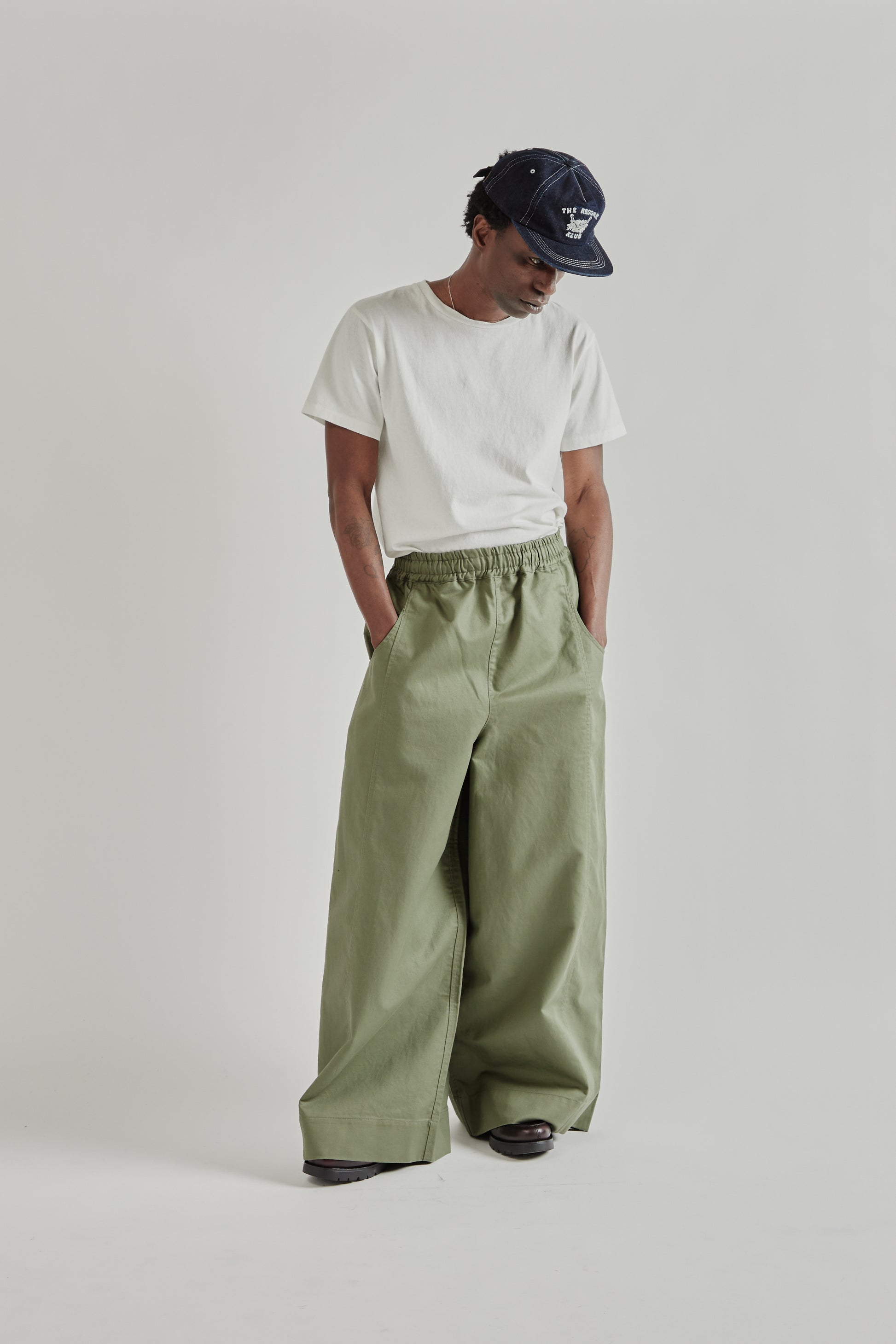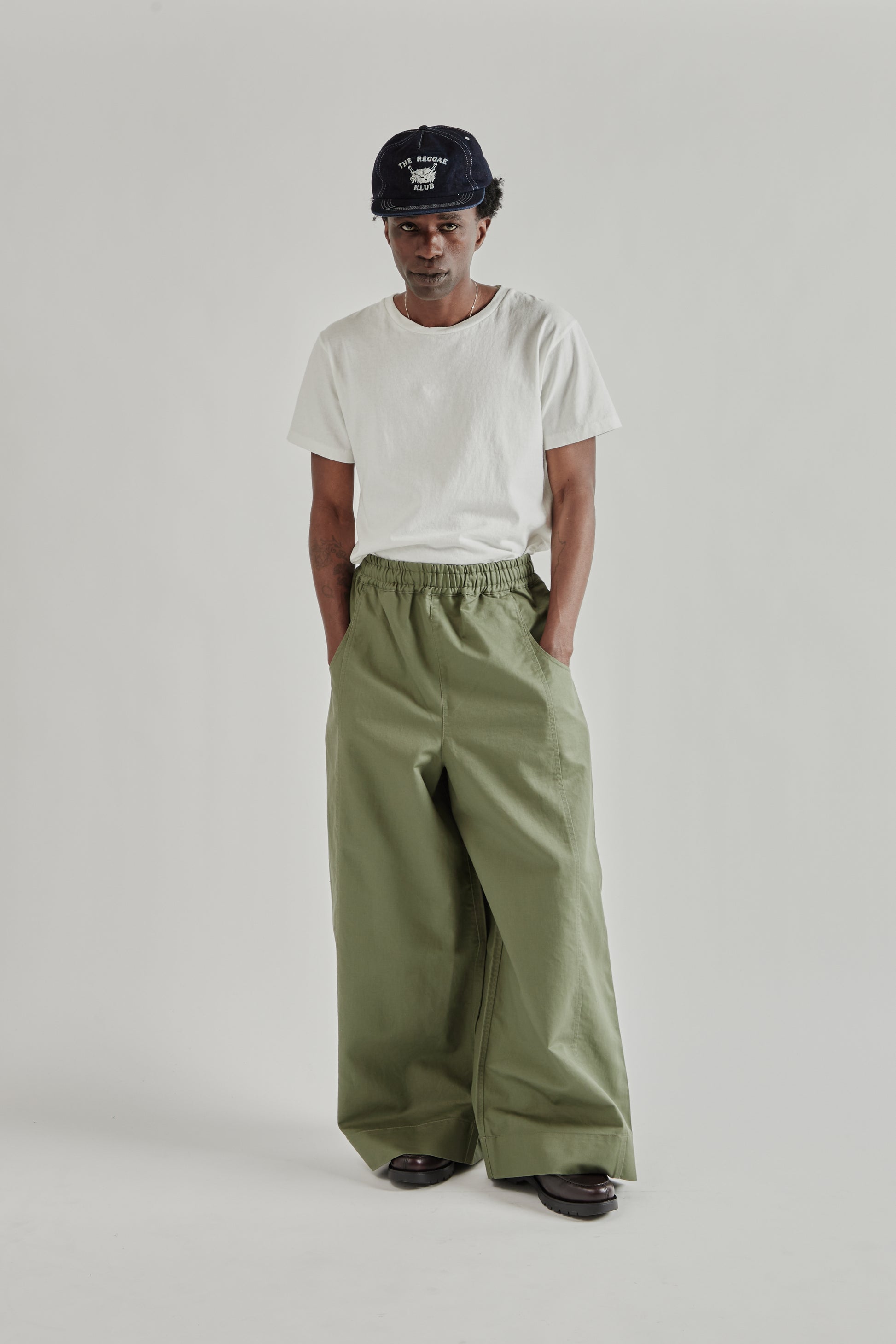 The Wide Leg Trousers by Nicholas Daley are made from cotton reverse sateen and cut in a relaxed, wide-leg silhouette. The design features an elasticated waistband with an internal drawcord for an adjustable fit. Finished with curved front pockets and a single patch pocket at the back, the construction keeps the look simple and practical. Made in India.