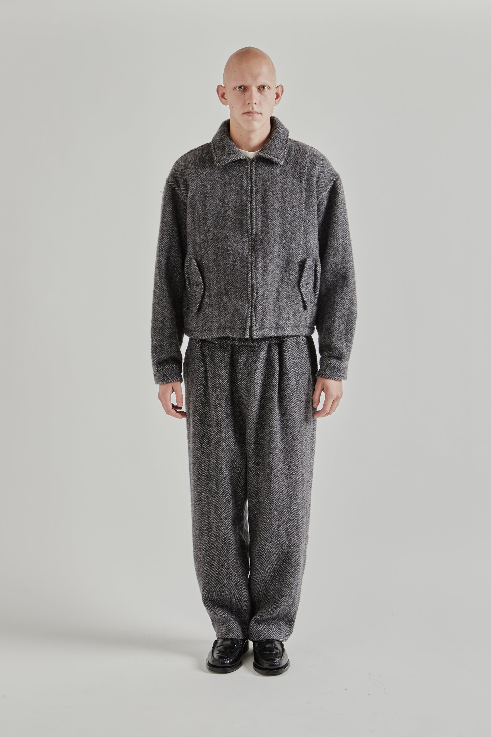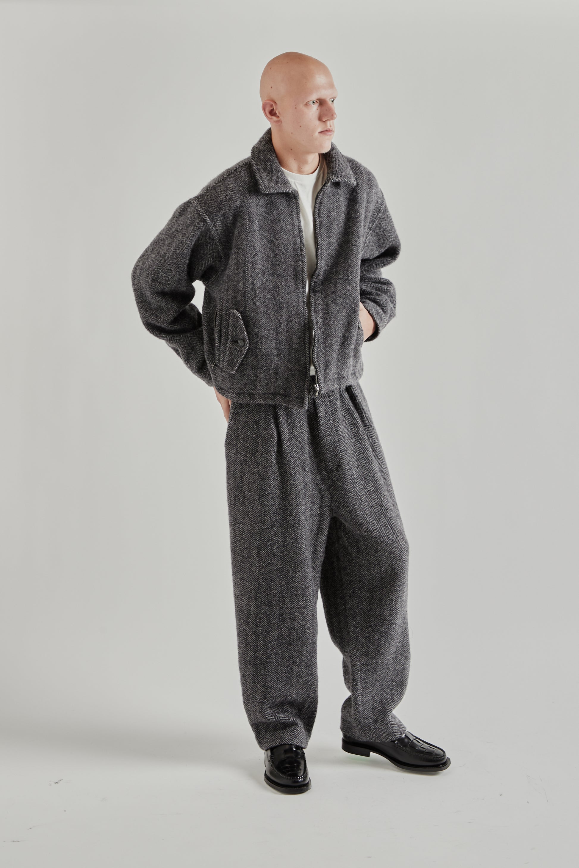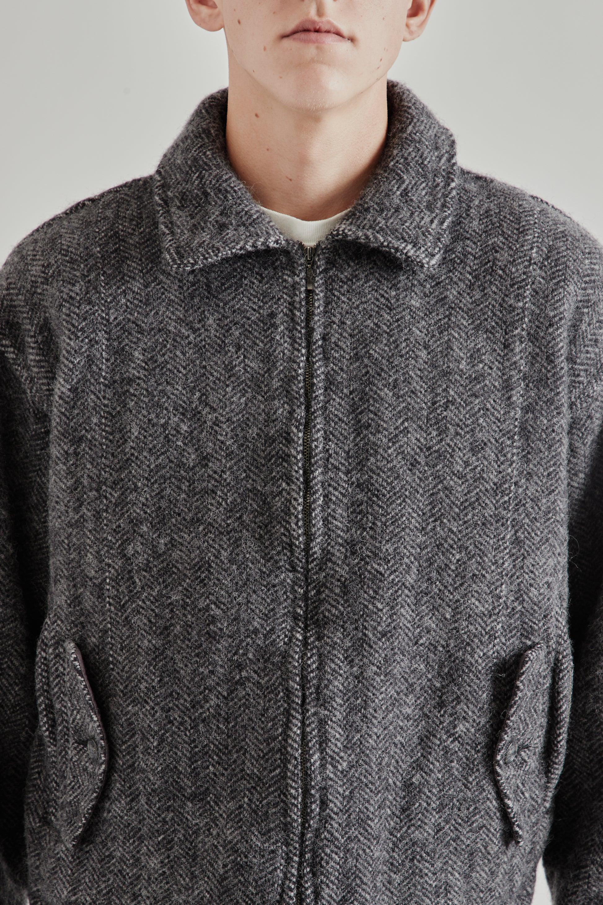 The Wool Zip Blouson in Herringbone from Japan-based is-ness is a warm, versatile jacket that showcases the brand’s dedication to material quality and craftsmanship. Made from high-quality wool herringbone, the lightweight yet insulating fabric is treated with a felting process to create a soft, resilient texture with a deep, unique expression. Featuring dropped shoulders, a relaxed fit, and a slightly streamlined length, the jacket includes dual flap and zipper pockets and adjustable hem buttons, offering both functionality and refined style.