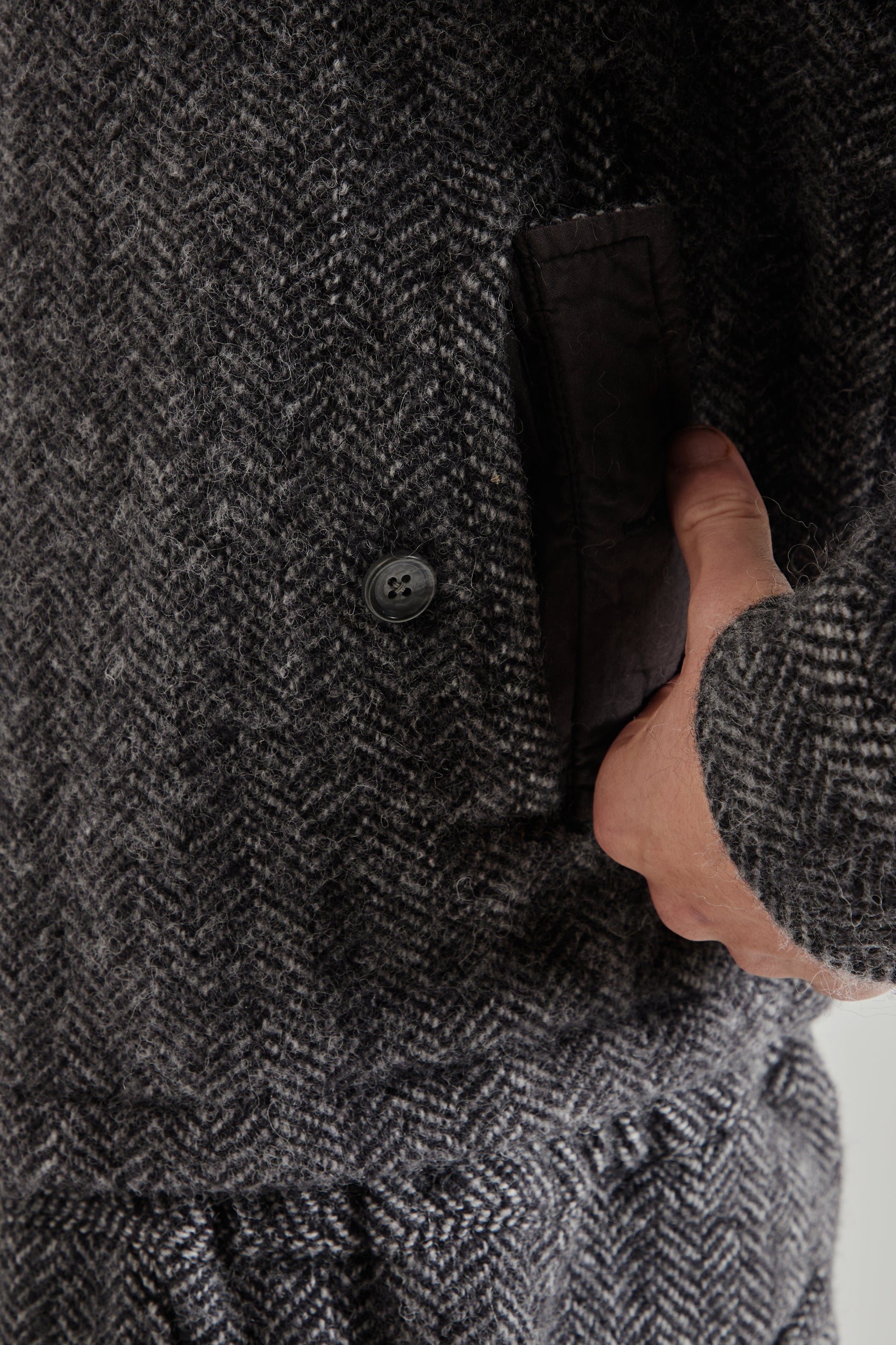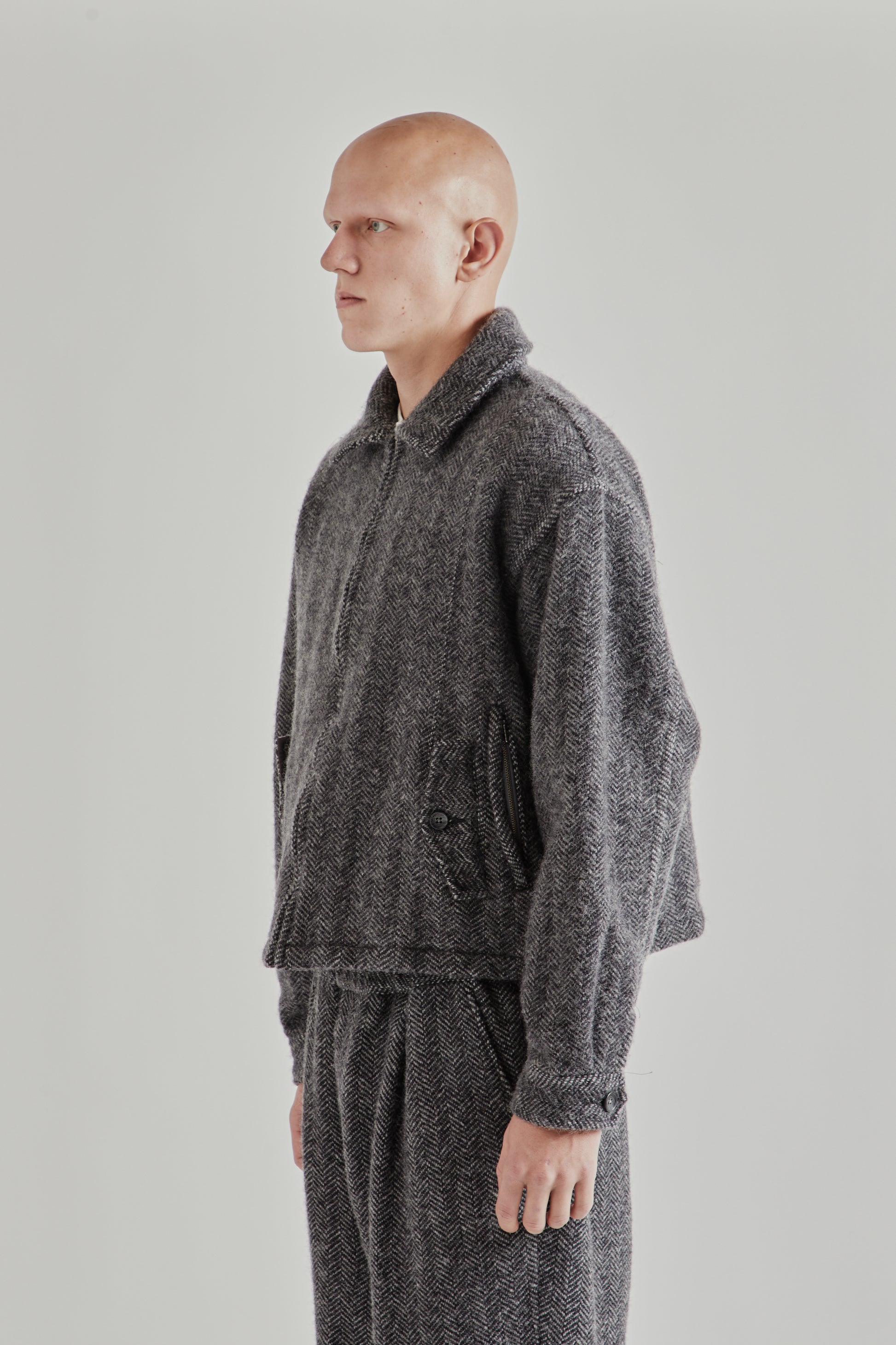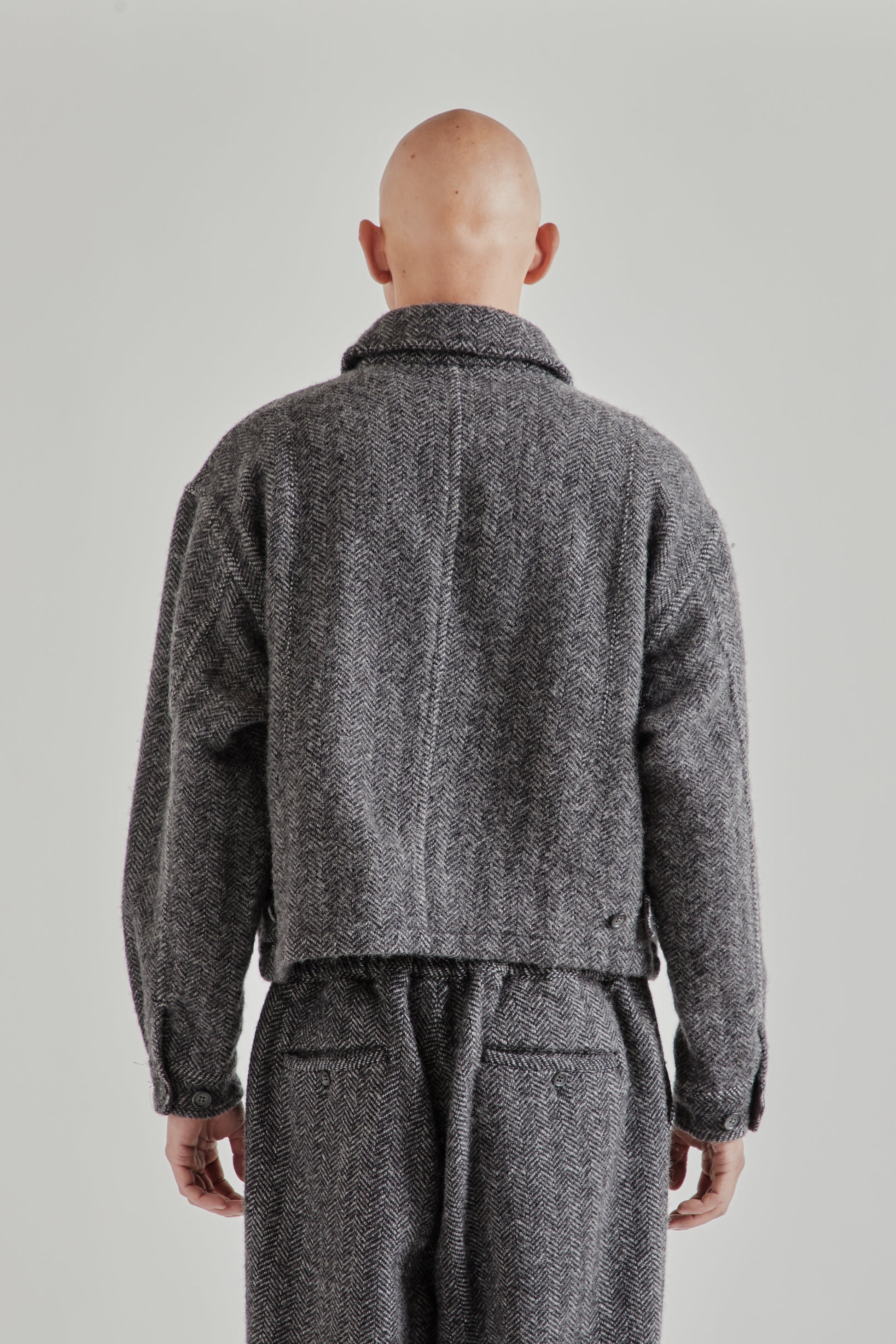 The Wool Zip Blouson in Herringbone from Japan-based is-ness is a warm, versatile jacket that showcases the brand’s dedication to material quality and craftsmanship. Made from high-quality wool herringbone, the lightweight yet insulating fabric is treated with a felting process to create a soft, resilient texture with a deep, unique expression. Featuring dropped shoulders, a relaxed fit, and a slightly streamlined length, the jacket includes dual flap and zipper pockets and adjustable hem buttons, offering both functionality and refined style.